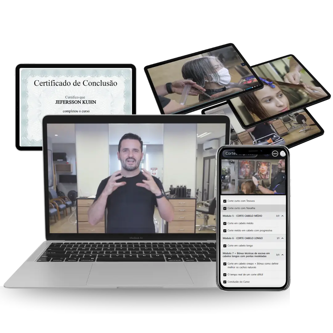 + de 7 módulos simples e diretos, separados por tipos de cabelo